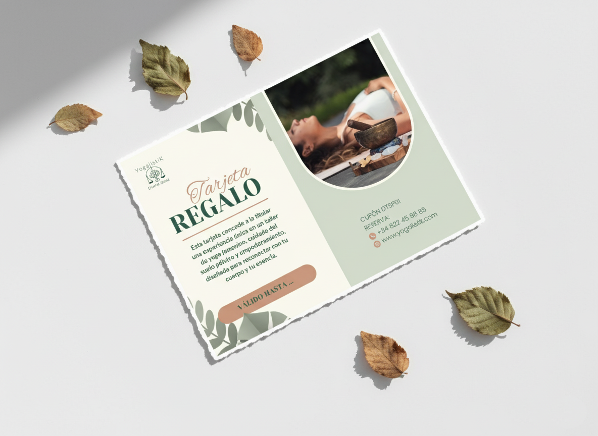 Cada tarjeta regalo lleva consigo una semilla de continuidad: 5 € de descuento en la próxima reserva conmigo (clases o talleres) para seguir cultivando bienestar.